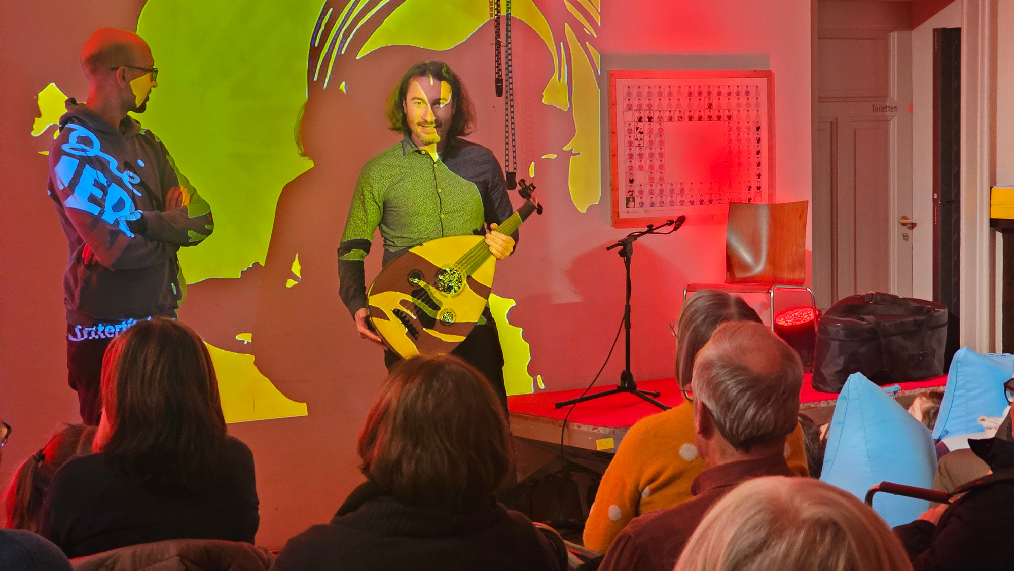 Johannes Söllner an den Tasten und Cédric Berner an den Saiten erwecken mit ihren Klängen die Bilder zum Leben, hauchen ihnen Seele, Charme, Angst, Liebe, Verzweiflung oder Hoffnung ein.